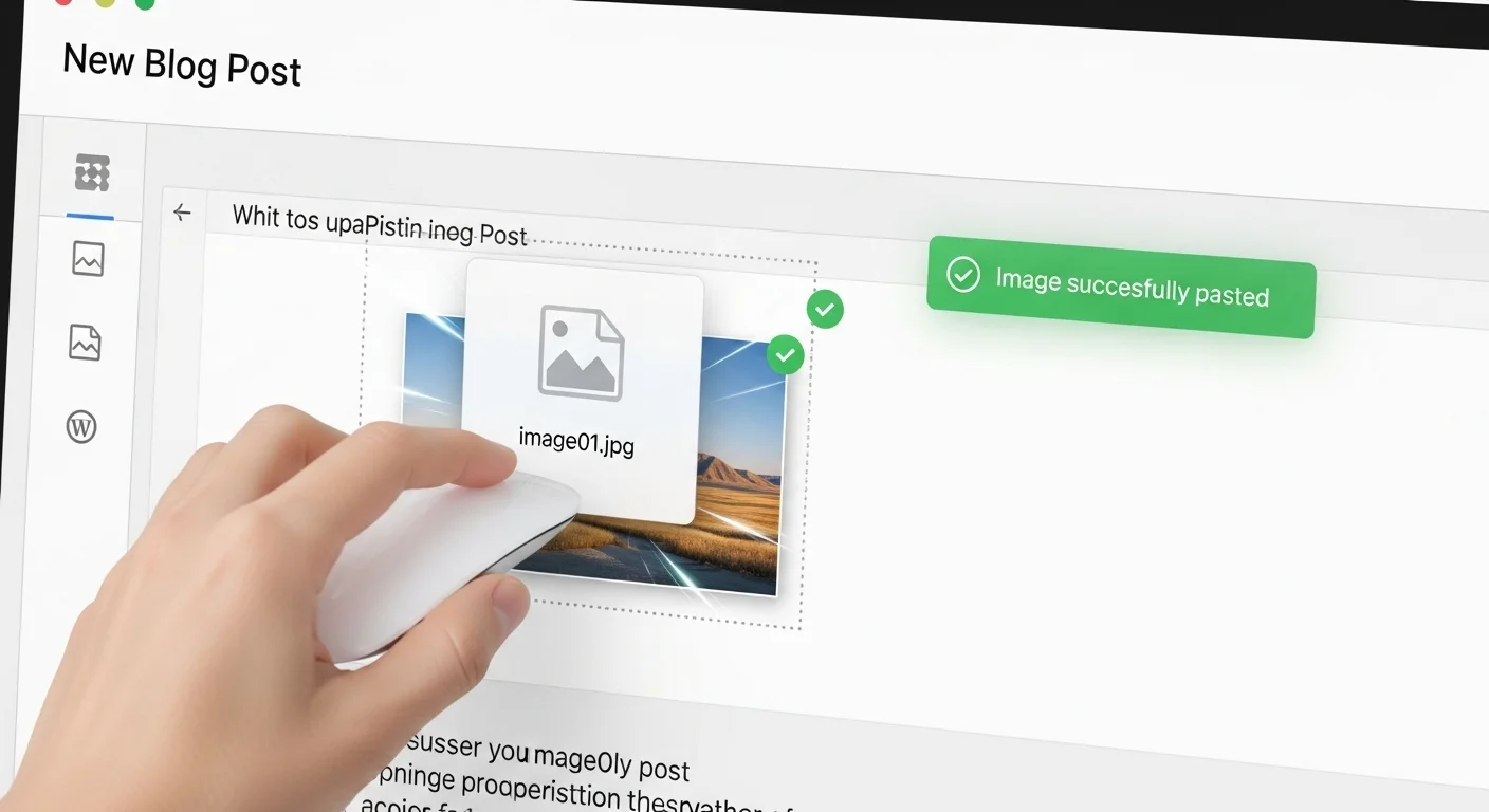 Ctrl+Cでコピーした画像やスクリーンショットを、投稿画面でCtrl+Vするだけで記事に挿入できます。 - 自動WebP変換: ペーストされた画像は、ユーザーのブラウザの力で瞬時にWebP形式に変換されてからアップロードされます。