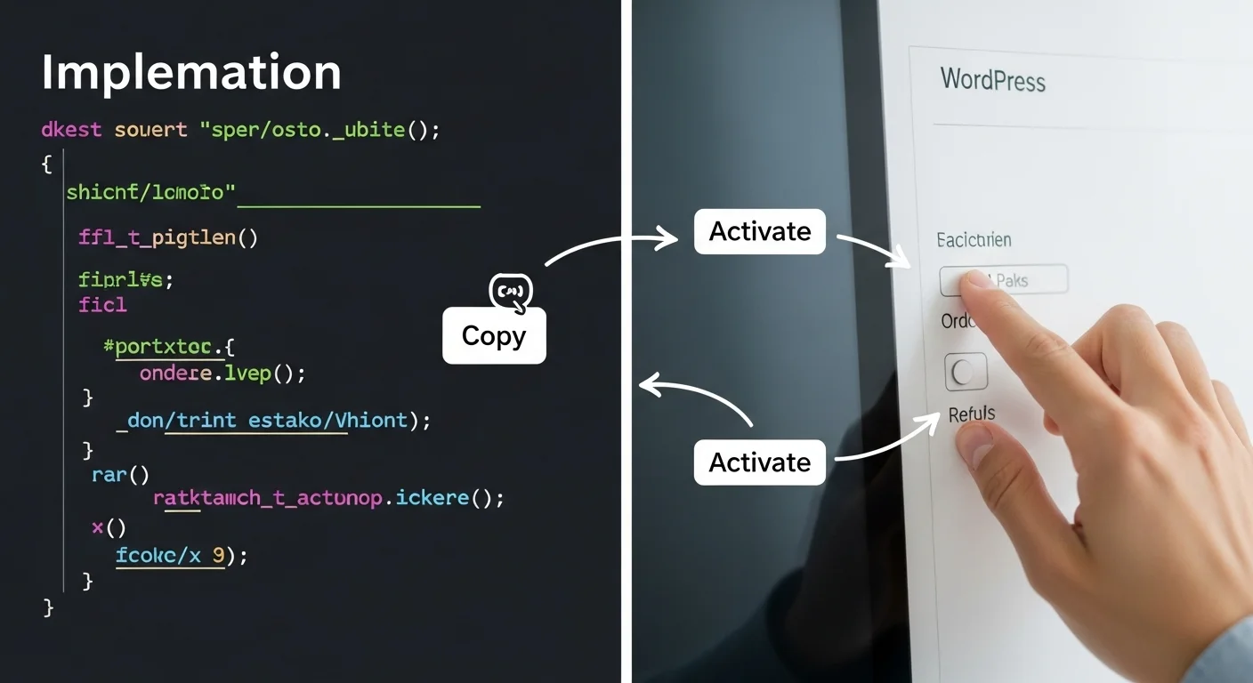 実装はとてもシンプルです。子テーマのjsフォルダにJavaScriptファイルを1つ作成し、functions.phpに必要なコードを貼り付けるだけで完了します。
